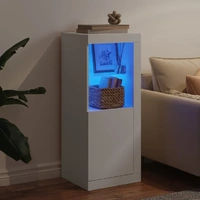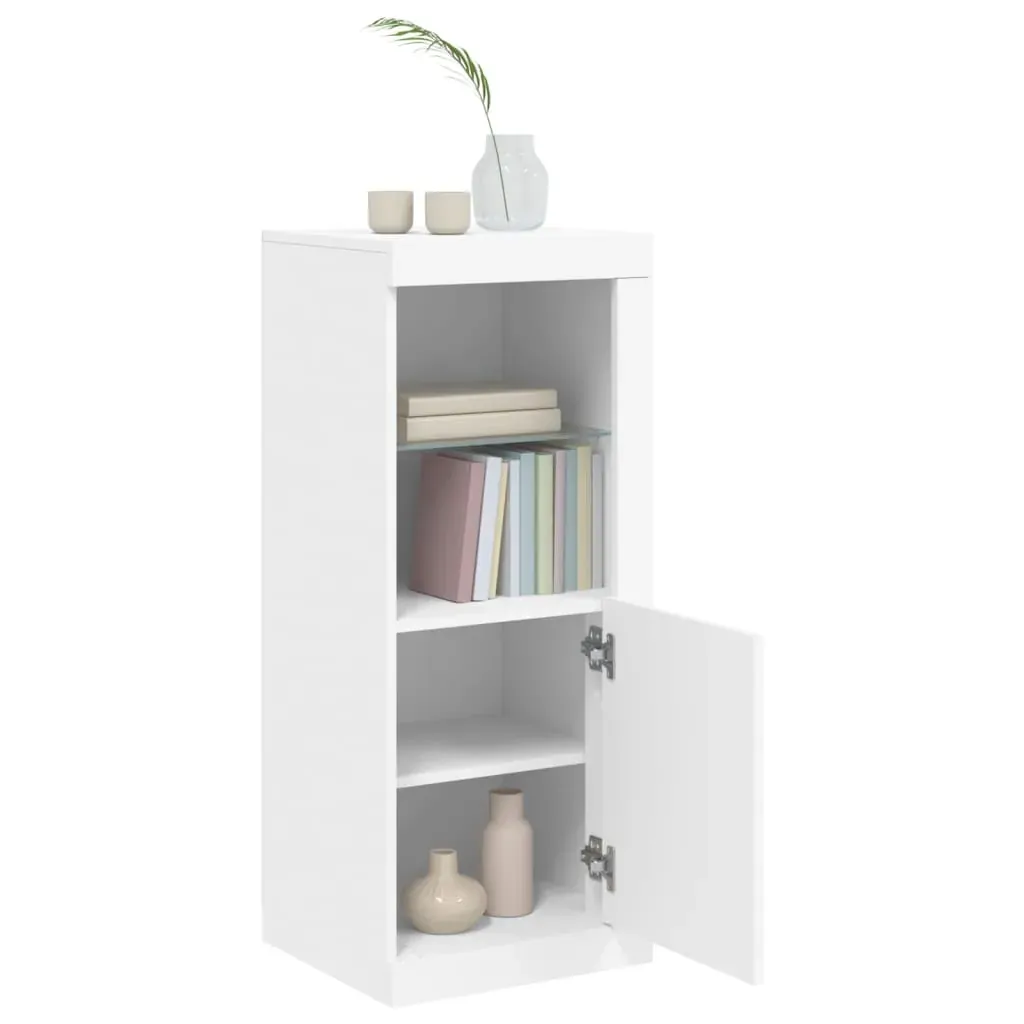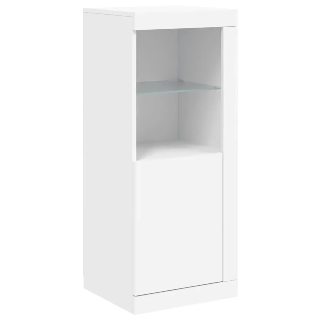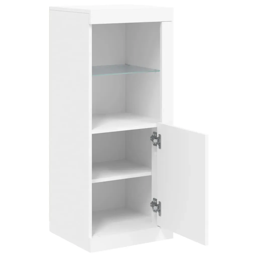 Decorate your room with this modern sideboard with LED lights, it easily blends with furniture in any style at your house. Durable material: The engineered wood is of exceptional quality with a smooth surface and features strength, stability and resistance to moisture.Ample storage space: The buffet provides plenty of storage space for keeping your magazines, books, remote controls and other small items well-organised and within easy reach.Displaying function: The sturdy top of sideboard cabinet is ideal for displaying decorative objects, photo frames, or potted plants.RGB LED lights: The storage cabinet is equipped with vibrant RGB LED lights. With various customisable menus, you can effortlessly change the colour of the lights and even set them to adjust automatically. Warning:To prevent it being overturned, this product must be used with the provided wall attachment device. Good to know:The product has a USB connector that requires a certified 5V USB power source (not included).