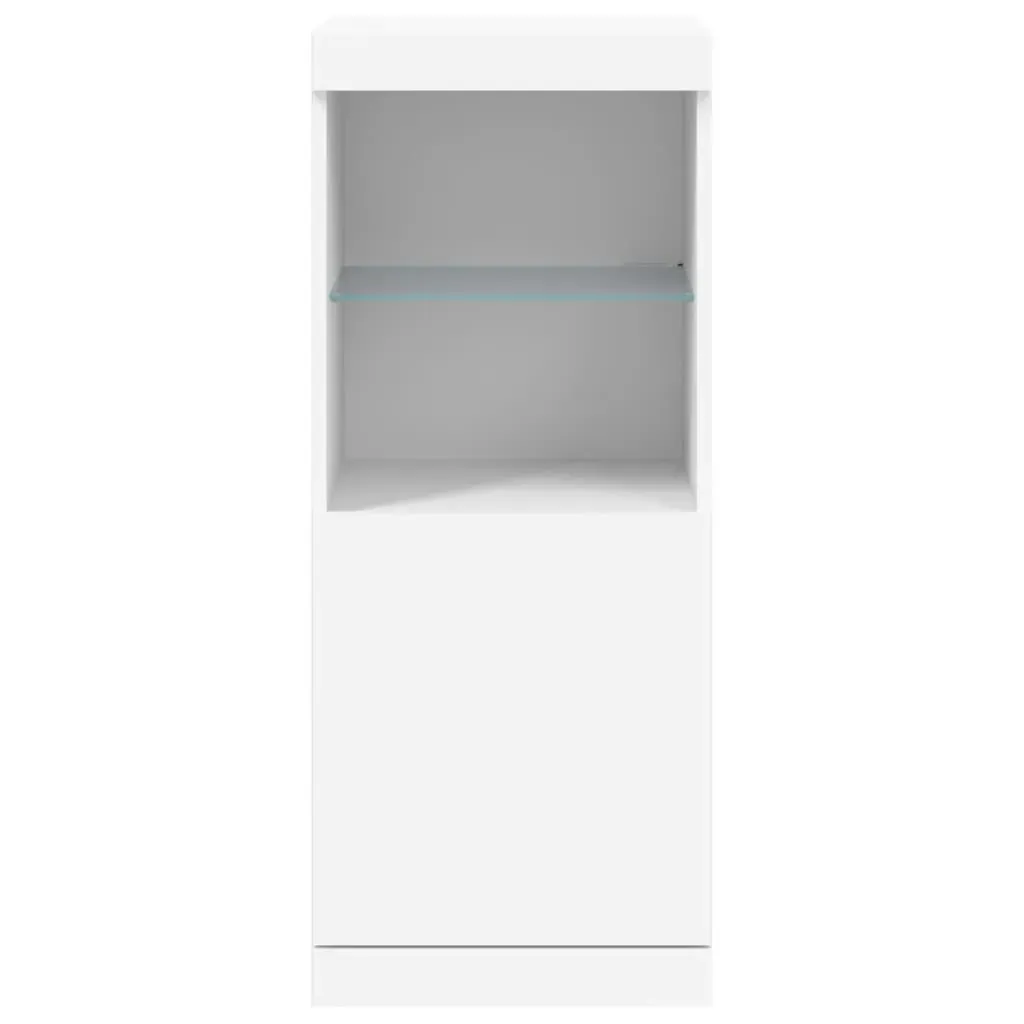 Decorate your room with this modern sideboard with LED lights, it easily blends with furniture in any style at your house. Durable material: The engineered wood is of exceptional quality with a smooth surface and features strength, stability and resistance to moisture.Ample storage space: The buffet provides plenty of storage space for keeping your magazines, books, remote controls and other small items well-organised and within easy reach.Displaying function: The sturdy top of the sideboard cabinet is ideal for displaying decorative objects, photo frames, or potted plants.Adjustable LED lights: This storage cabinet is equipped with RGB LED lights, which has different menus to change the light colour and adjust it automatically, decorating your home colourful and beautiful. Warning:To prevent it being overturned, this product must be used with the provided wall attachment device. Good to know:The product has a USB connector that requires a certified 5V USB power source (not included).