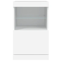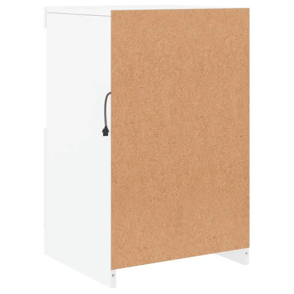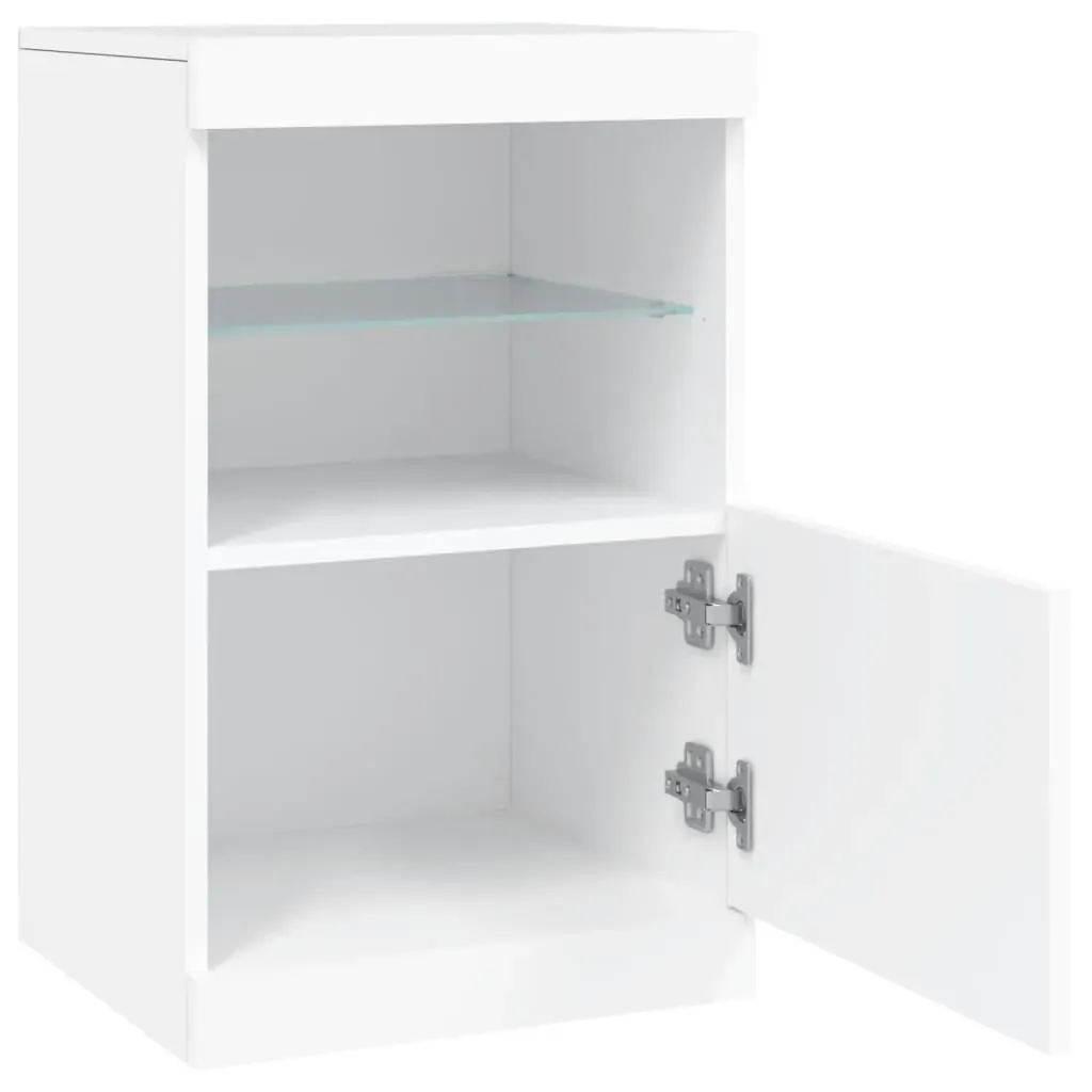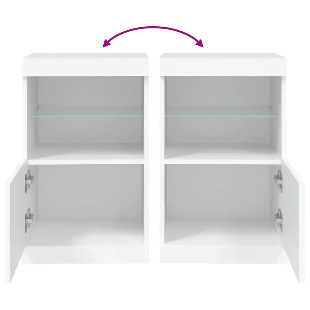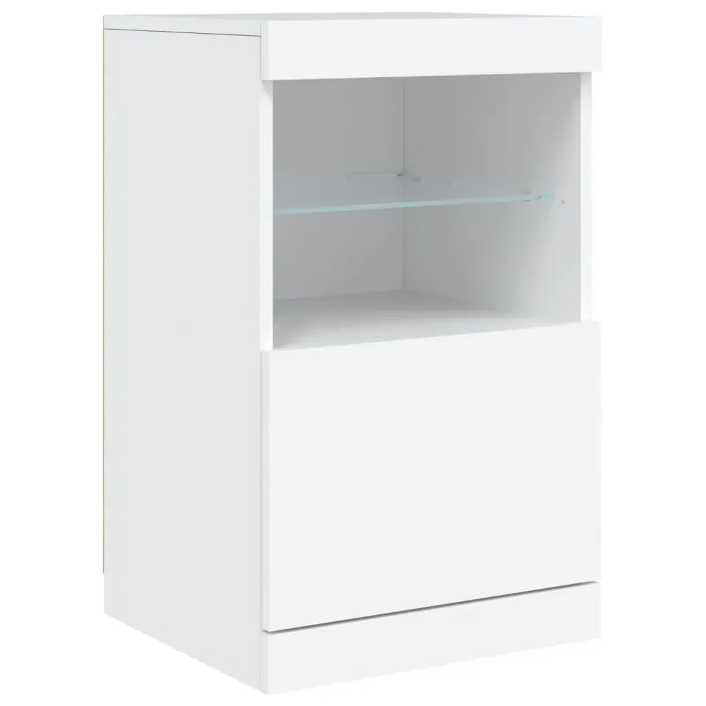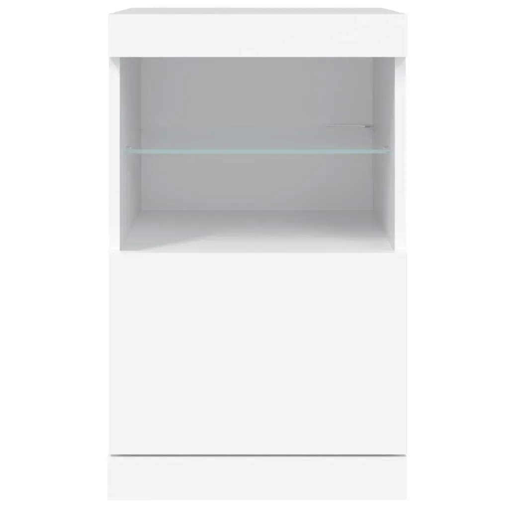 Decorate your room with this modern sideboard with LED lights, it easily blends with furniture in any style at your house. Durable material: The engineered wood is of exceptional quality with a smooth surface and features strength, stability and resistance to moisture.Ample storage space: The buffet provides plenty of storage space for keeping your magazines, books, remote controls and other small items well-organised and within easy reach.Displaying function: The sturdy top of sideboard cabinet is ideal for displaying decorative objects, photo frames, or potted plants.RGB LED lights: The storage cabinet is equipped with vibrant RGB LED lights. With various customisable menus, you can effortlessly change the colour of the lights and even set them to adjust automatically. Warning:To prevent it being overturned, this product must be used with the provided wall attachment device. Good to know:The product has a USB connector that requires a certified 5V USB power source (not included).
