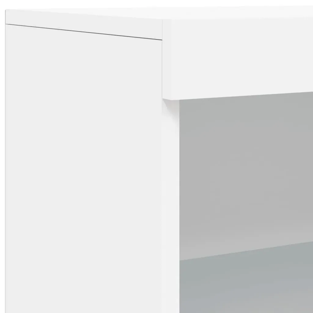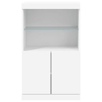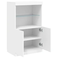 Decorate your room with this modern sideboard with LED lights, it easily blends with furniture in any style at your house. Durable material: The engineered wood is of exceptional quality with a smooth surface and features strength, stability and resistance to moisture.Ample storage space: The buffet provides plenty of storage space for keeping your magazines, books, remote controls and other small items well-organised and within easy reach.Displaying function: The sturdy top of sideboard cabinet is ideal for displaying decorative objects, photo frames, or potted plants.RGB LED lights: The storage cabinet is equipped with vibrant RGB LED lights. With various customisable menus, you can effortlessly change the colour of the lights and even set them to adjust automatically. Warning:To prevent it being overturned, this product must be used with the provided wall attachment device. Good to know:The product has a USB connector that requires a certified 5V USB power source (not included).