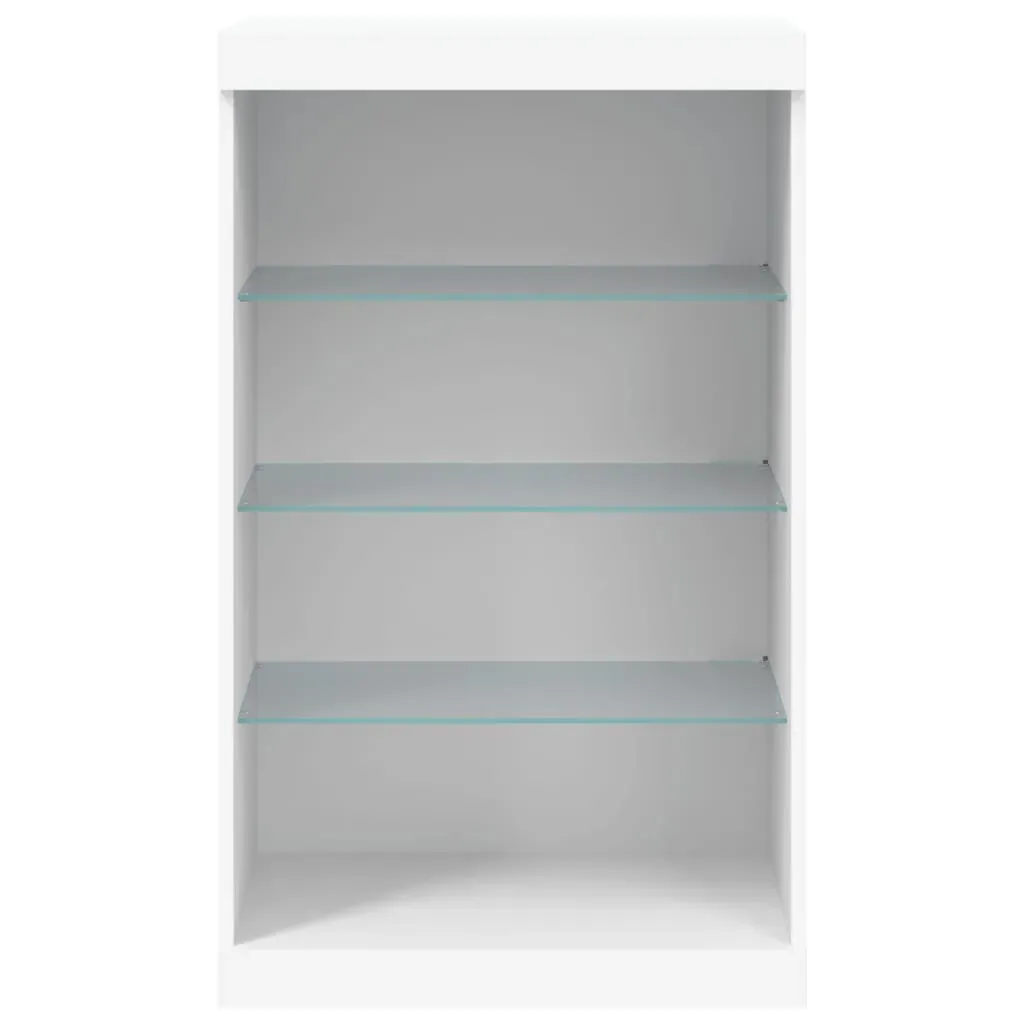 Decorate your room with this modern sideboard with LED lights, it easily blends with furniture in any style at your house. Durable material: The engineered wood is of exceptional quality with a smooth surface and features strength, stability and resistance to moisture.Ample storage space: The buffet provides plenty of storage space for keeping your magazines, books, remote controls and other small items well-organised and within easy reach.Displaying function: The sturdy top of the sideboard cabinet is ideal for displaying decorative objects, photo frames, or potted plants.Adjustable LED lights: This storage cabinet is equipped with RGB LED lights, which has different menus to change the light colour and adjust it automatically, decorating your home colourful and beautiful. Warning:To prevent it being overturned, this product must be used with the provided wall attachment device. Good to know:The product has a USB connector that requires a certified 5V USB power source (not included).