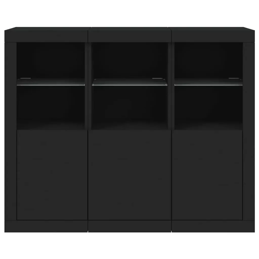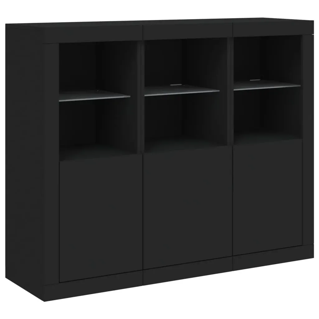 Decorate your room with these modern sideboards with LED lights, they easily blend with furniture in any style at your house. Durable material: The engineered wood is of exceptional quality with a smooth surface and features strength, stability and resistance to moisture.Ample storage space: These buffets provide plenty of storage space for keeping your magazines, books, remote controls and other small items well-organised and within easy reach.Displaying function: The sturdy top of sideboard cabinets is ideal for displaying decorative objects, photo frames, or potted plants.Adjustable LED lights: These storage cabinets are equipped with RGB LED lights, which have different menus to change the light colour and adjust it automatically, decorating your home colourful and beautiful. Warning:To prevent it being overturned, this product must be used with the provided wall attachment device.Good to know:The product has a USB connector that requires a certified 5V USB power source (not included).