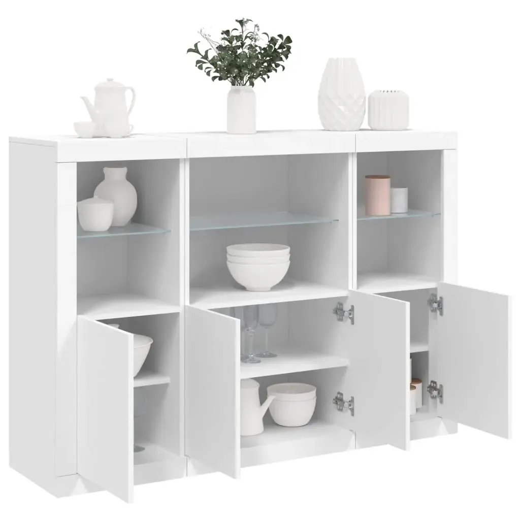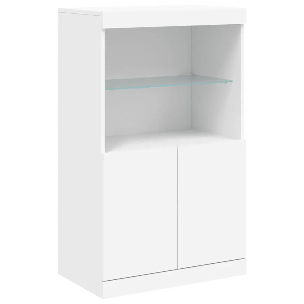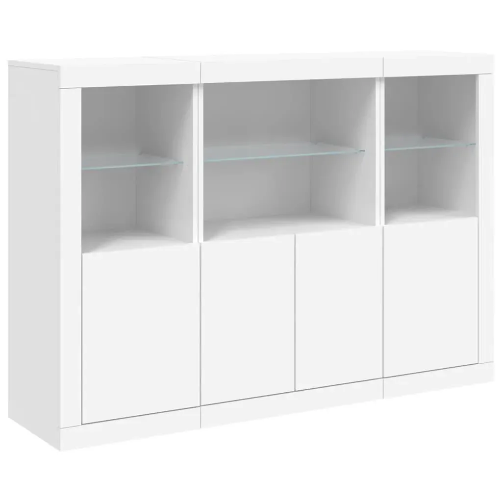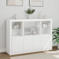 Decorate your room with these modern sideboards with LED lights, they easily blend with furniture in any style at your house. Durable material: The engineered wood is of exceptional quality with a smooth surface and features strength, stability and resistance to moisture.Ample storage space: These buffets provide plenty of storage space for keeping your magazines, books, remote controls and other small items well-organised and within easy reach.Displaying function: The sturdy top of sideboard cabinets is ideal for displaying decorative objects, photo frames, or potted plants.Adjustable LED lights: These storage cabinets are equipped with RGB LED lights, which have different menus to change the light colour and adjust it automatically, decorating your home colourful and beautiful. Warning:To prevent it being overturned, this product must be used with the provided wall attachment device.Good to know:The product has a USB connector that requires a certified 5V USB power source (not included).