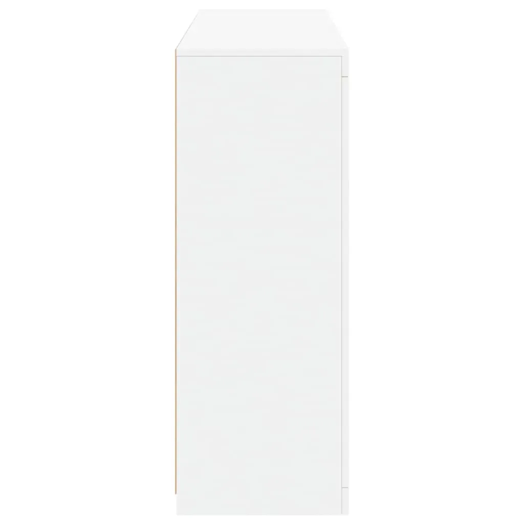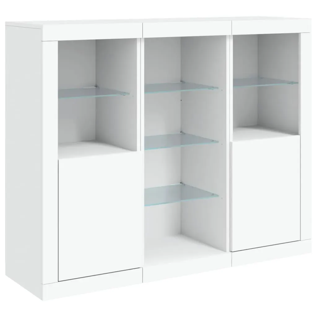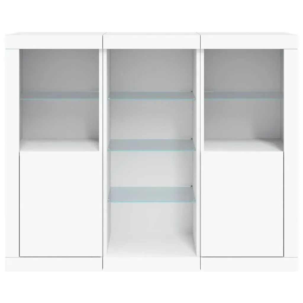 Decorate your room with these modern sideboards with LED lights, they easily blend with furniture in any style at your house. Durable material: The engineered wood is of exceptional quality with a smooth surface and features strength, stability and resistance to moisture.Ample storage space: These buffets provide plenty of storage space for keeping your magazines, books, remote controls and other small items well-organised and within easy reach.Displaying function: The sturdy top of sideboard cabinets is ideal for displaying decorative objects, photo frames, or potted plants.Adjustable LED lights: These storage cabinets are equipped with RGB LED lights, which have different menus to change the light colour and adjust it automatically, decorating your home colourful and beautiful. Warning:To prevent it being overturned, this product must be used with the provided wall attachment device.Good to know:The product has a USB connector that requires a certified 5V USB power source (not included).