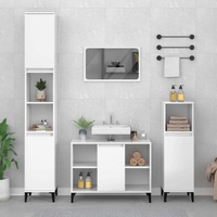This sink cabinet is meant to be a great addition to your bathroom, giving it a tidy and striking appearance! Durable material: The engineered wood is of exceptional quality with smooth surface and also features strength, stability, and resistance to moisture.Ample storage space: The bathroom sink cabinet has 5 compartments and a door, offering various storage options and extra space to store items in your bathroom. The top of the bathroom cabinet is ideal for placing the sink.Metal feet: The metal feet add a modern and calm style to your interior while ensuring stability.Easy-to-clean surface: The bathroom furniture is easy to clean with a damp cloth. Warning:To prevent it being overturned, this product must be used with the provided wall attachment device. Good to know:To make assembly as easy as possible, each product is delivered with a manual.The sink is not included.