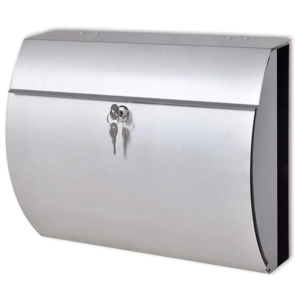 This mailbox with a sleek, modern design is made of durable stainless steel. This mailbox features a mail slot, newspaper holder and a convenient lock with two keys. Our high-quality mailbox will be a great choice! Delivery includes a mailbox, 2 keys and mounting accessories.