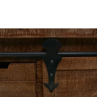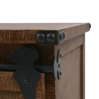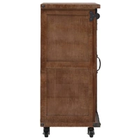 This classic storage cabinet will make a decorative addition to your rooms. It can also be used as a lowboard or sideboard. This highly stable and durable cabinet was crafted from solid fir wood, which exudes vintage charm and gives its rustic characteristics. The cabinet has ample space for keeping your various items neatly organised. The unique sliding track design helps the door to easily open and close and also adds to the cabinet's vintage and industrial style. The wooden cabinet is designed with four flexible castors to be moved around the house. This cabinet is easy to assemble.