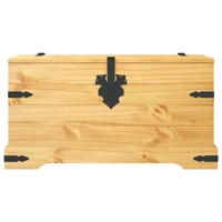This Corona-style wooden storage chest exudes a rustic Mexican charm that will make it a timeless addition to your living room, bedroom or guest room, while keeping clutter at bay. The spacious chest can be used for storing blankets, cushions, and other accessories. This rustic storage box is crafted from high-quality pinewood, which makes it hard-wearing. The robust wooden chest requires minimal maintenance, and the beautiful wood grains give it a rustic charm. The storage box also has rugged black metal details which add to its sturdiness as well as its retro style. The chest has convenient handles and can be locked. You can even use it as a coffee table or side table.