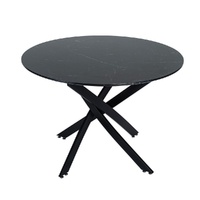 This table is made of solid MDF desktop, which is painted with elegant black marble design with white texture. This table is 110cm in diameter and can comfortably accommodate 4 people. The 20mm thick table top keeps it slim, but it is strong enough to hold all your favorite dishes.