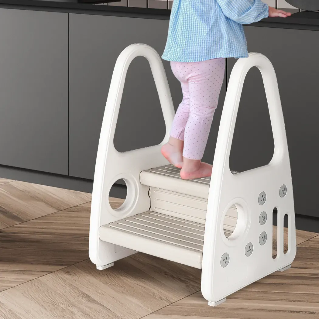 Kids can grab the handrails as they hop up onto the foot stool. Children can even use it as a comfy seat. Your kiddo can even carry the stool around themselves.