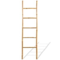 This bamboo towel ladder is uniquely designed to be used as a towel rack in the bathroom or as a decoration in your home. The ladder is free standing and unattached so that you can simply lean it against a wall and hang the towels on the rungs to dry them and keep them within reach. The ladder is made of high-quality bamboo.