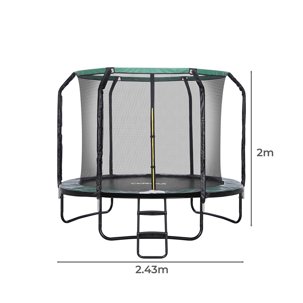 Climb the trampoline ladder inside. Bounce. Bounce higher. Let the trampoline springs and trampoline mat fling you higher. Or you can start jogging on your trampoline.