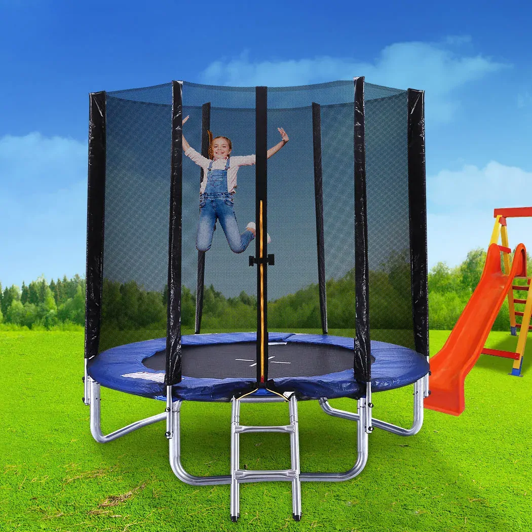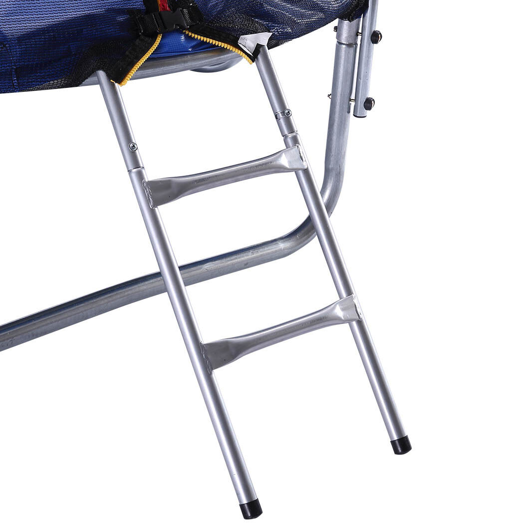 To withstand all the unlimited fun our product is made of a high tensile galvanized steel frame. The entire structure is stabilized to stay firm and steady once installed. Its steel construction offers exceptional resistance towards rust and corrosion. It comprises of a well-stitched mat to effectively absorb all those unpredictable movements for a smoother experience. The surface is provided with a UV stabilized base with 12cm thick padding. With our product you get safety first featuring a unique double locking system to secure the trampoline. It is equipped with foam-wrapped steel poles all around to form a safe space. A 3mm weave net encloses the trampoline to prevent accidental falloffs. For greater convenience we also provide a step ladder for easy access to the trampoline.