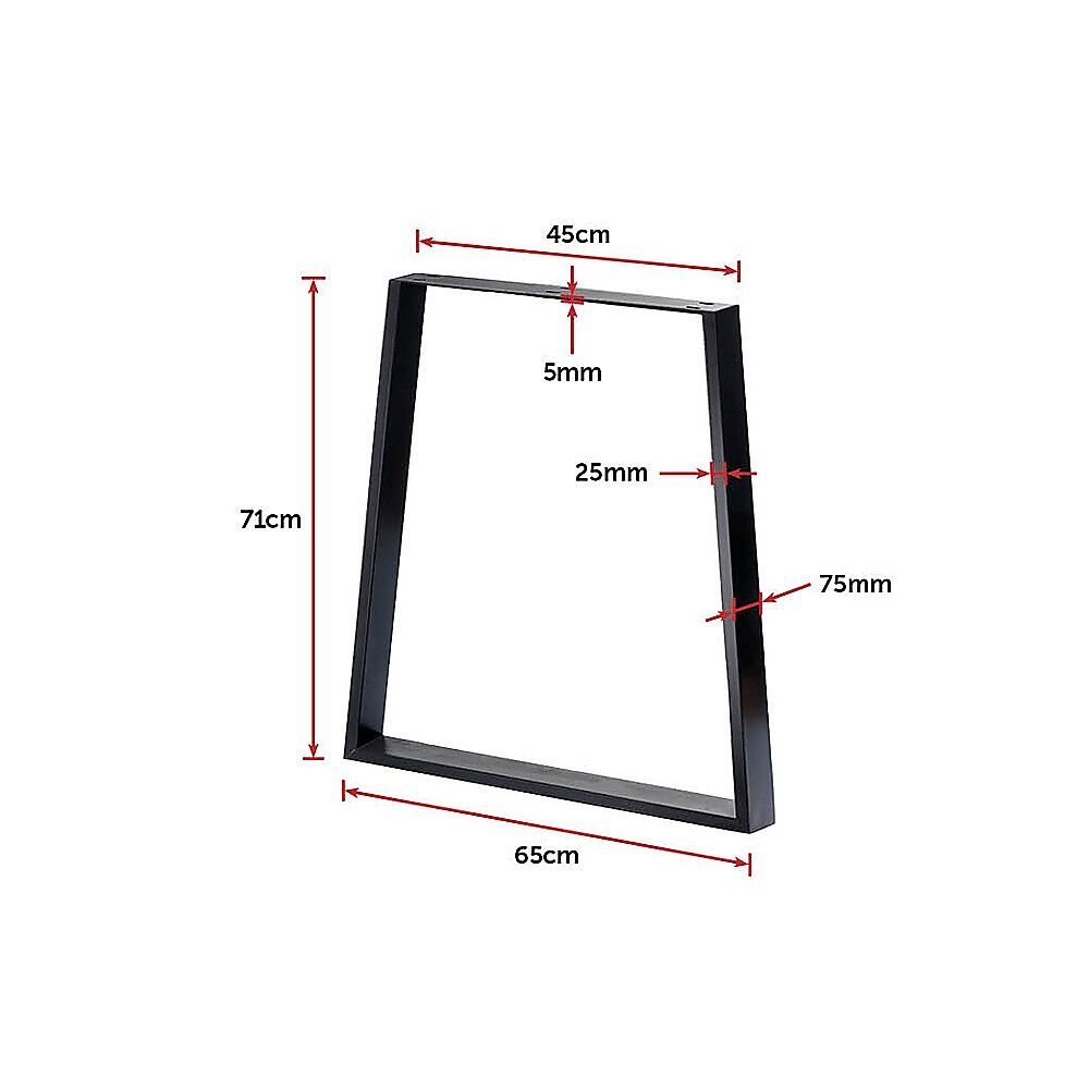 Manufactured from 75-mm sturdy steel tubes, these legs can support tables or benches up to 200 kilogrammes. Installation is easy. They're pre-welded and have pre-drilled screw holes, so you'll have your gorgeous new table up in no time. Order a set of these gorgeous trapezium table legs today.