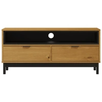 This wooden TV cabinet is designed to be a focal point of your room with a trendy yet practical design. Solid pine wood: Solid pine wood is a beautiful natural material. Pine wood has a straight grain, and the knots give the material its signature, rustic look. Made of solid pine wood, the TV stand is durable and sturdy.Spacious storage: The TV unit has ample storage space which makes it an ideal place for storing all your magazines, DVDs, and other items. The cable hole at the back of the cabinet allows you to organise the mess wires easily.Displaying function: The sturdy top of the media cabinet is ideal for displaying decorative items like photo frames and plants. Warning:To prevent it being overturned, this product must be used with the provided wall attachment device.