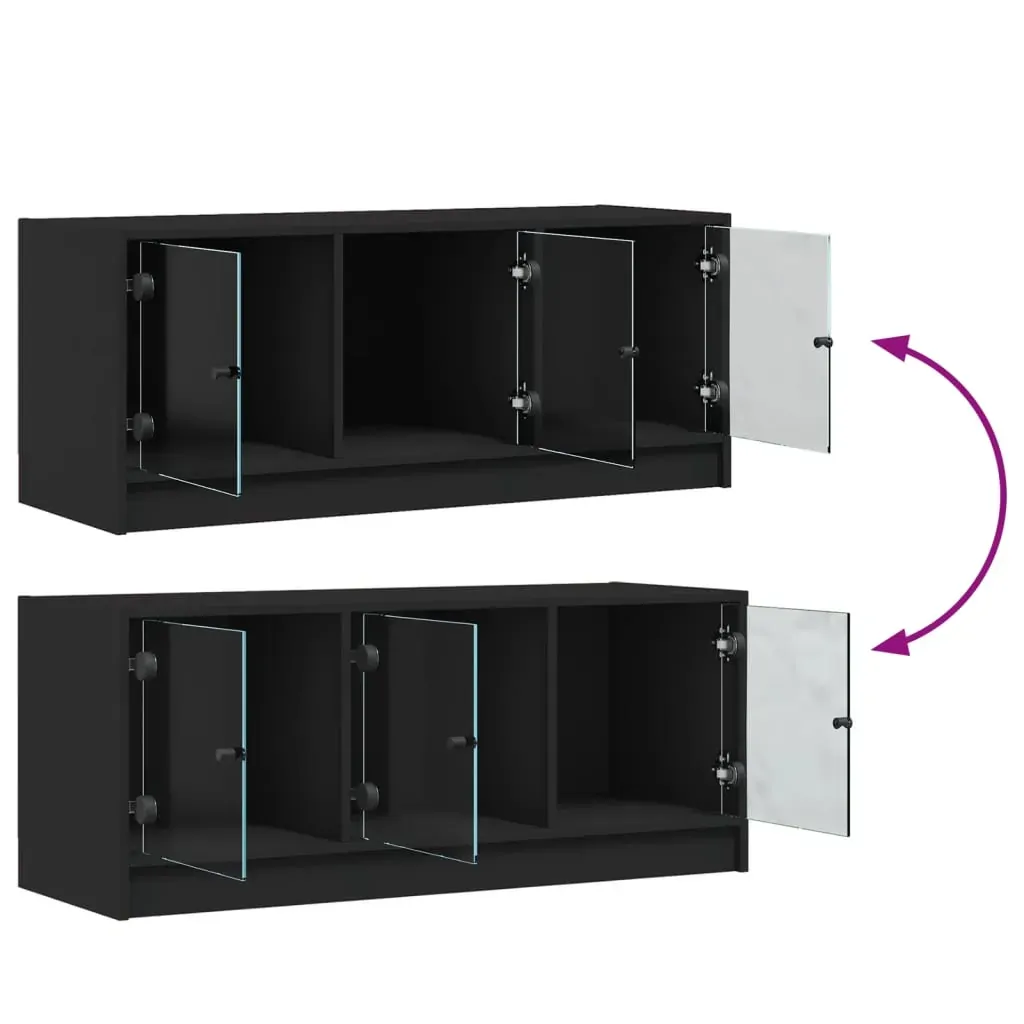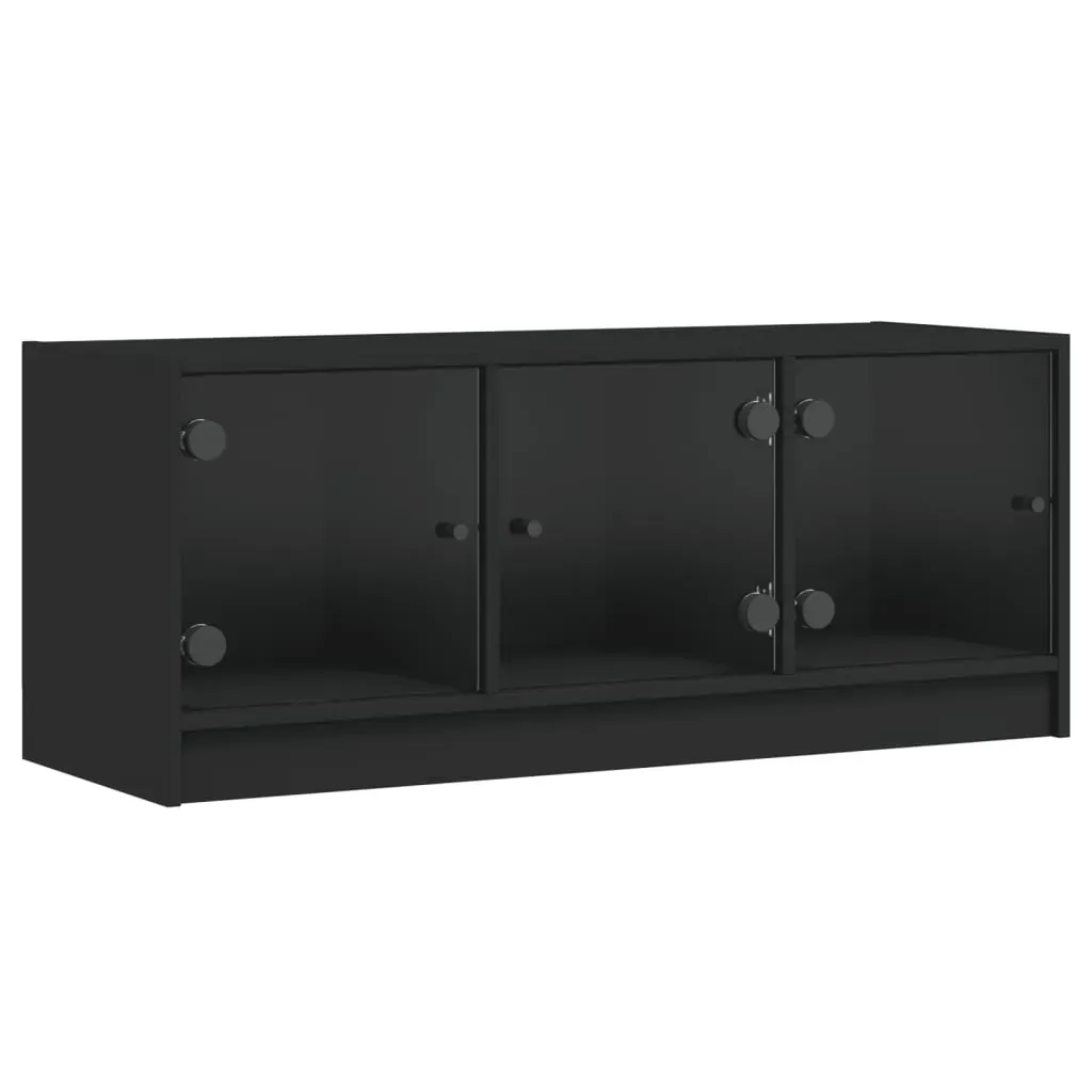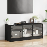 This TV cabinet features a sleek and classic design, making it a decorative and practical extension to your decor. Durable material: The engineered wood is of exceptional quality with smooth surface and also features strength, stability and resistance to moisture. Made of engineered wood, this TV unit is easy to clean.Ample storage: This TV stand features ample storage space which makes it an ideal place for storing all your magazines, DVDs or other items.Practical glass doors: Keep your space clutter-free by hiding small essentials behind the doors of the storage cabinet. In addition, the glass doors allow you to see inside the media cabinet to display items beautifully.
