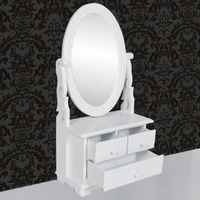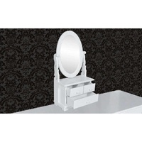 This is a lovely piece of furniture adding a touch of vintage chic to your dressing table. A stylish oval-shaped tilting mirror is place at the center.The base holds two small and one big pullout drawers that can store your valuables. The drawers can be easily removed for cleaning. This vanity table is made of high quality MDF. The soft white finish and fine craftsmanship provide luster and classiness. It can be put on top of chests or a table for a dressing table unit. This list is for one vanity table. Check our other products for other matching funiture! Note: since this furniture is hand-crafted, made of wood and painted white, it may come with small defect.