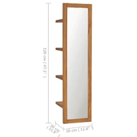 This wall mirror with shelves, featuring a colonial yet rustic style, provides double functions in your bathroom decor. The bathroom mirror is made of solid teak wood with a natural finish, making it quite stable and easy to maintain. This wooden mirror has four open shelves at the backside, so it not only can be used to look yourself in the mirror but also offers sufficient space to place shampoos, cosmetics, toothpastes, etc. Additionally, for your convenience, there are mounting holes inserted in this product when it is put on the wall.