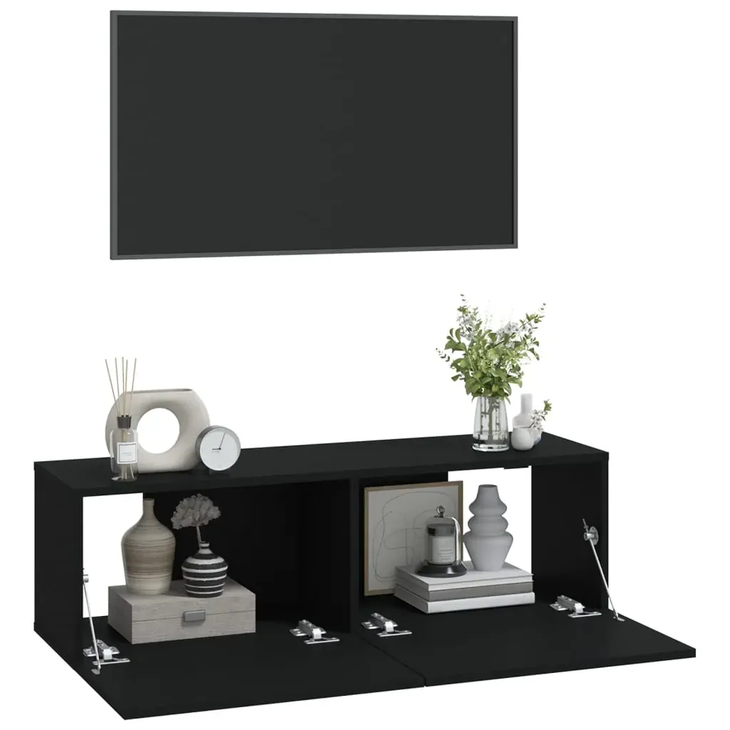 These wall TV cabinets feature a sleek and classic design. They can be easily attached to the wall, making them a decorative and practical extension to your decor. Premium material: The engineered wood is of exceptional quality with smooth surface and also features strength, stability and resistance to moisture. Made of engineered wood, these TV cabinets are easy to clean.Ample storage: The TV stand features 2 compartments which make it an ideal place for storing all your magazines, DVDs or other items.Wall-mounted design: These TV units can be wall-mounted to add extra storage space. That way, you can maximise your floor space and keep the area clean.Practical doors: The media cabinet's two doors keep your space clutter-free by hiding small essentials behind the doors. Additionally, the door features a drop-down design, which makes it easier to get items. Good to know:To make assembly as easy as possible, each product is delivered with a manual.Screws and plugs for inside the wall are not included. We advise to find and use screws and plugs suitable specifically for your walls. If you're not sure, you can consult with a professional. Please read and follow each step of the instructions.