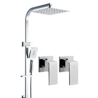 WELS 10" Rain Shower Head Set Square Dual Heads Faucet High Pressure Hand Held
