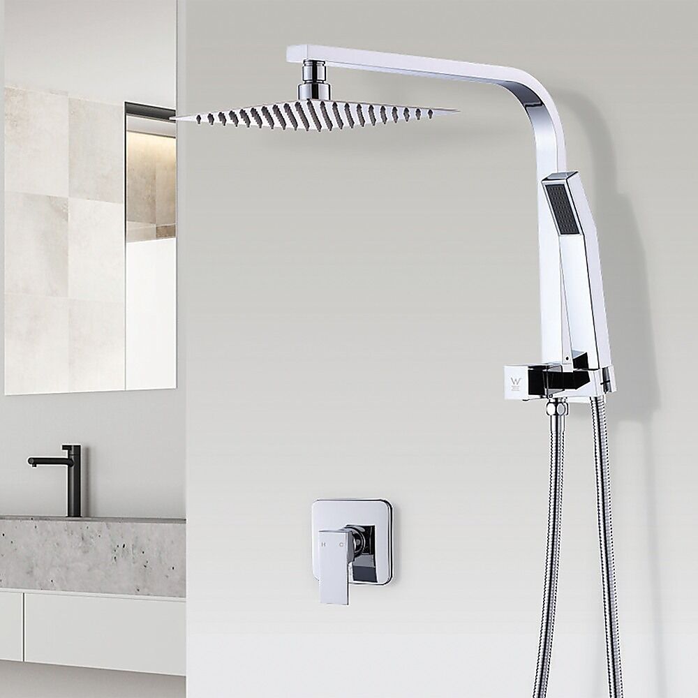 1x WELS 8" Rain Shower Head Set Square Dual Heads Faucet High Pressure With Mixer