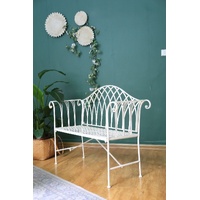 The Lavinia Iron Bench has a delicate, timeless design, from its distressed antique white colour to its subtle curves and arched latticework. A perfect alfresco bench for 2 people to sit together and enjoy the garden. Please be noted, this is not a pure white product, it's finished with antique style looking.