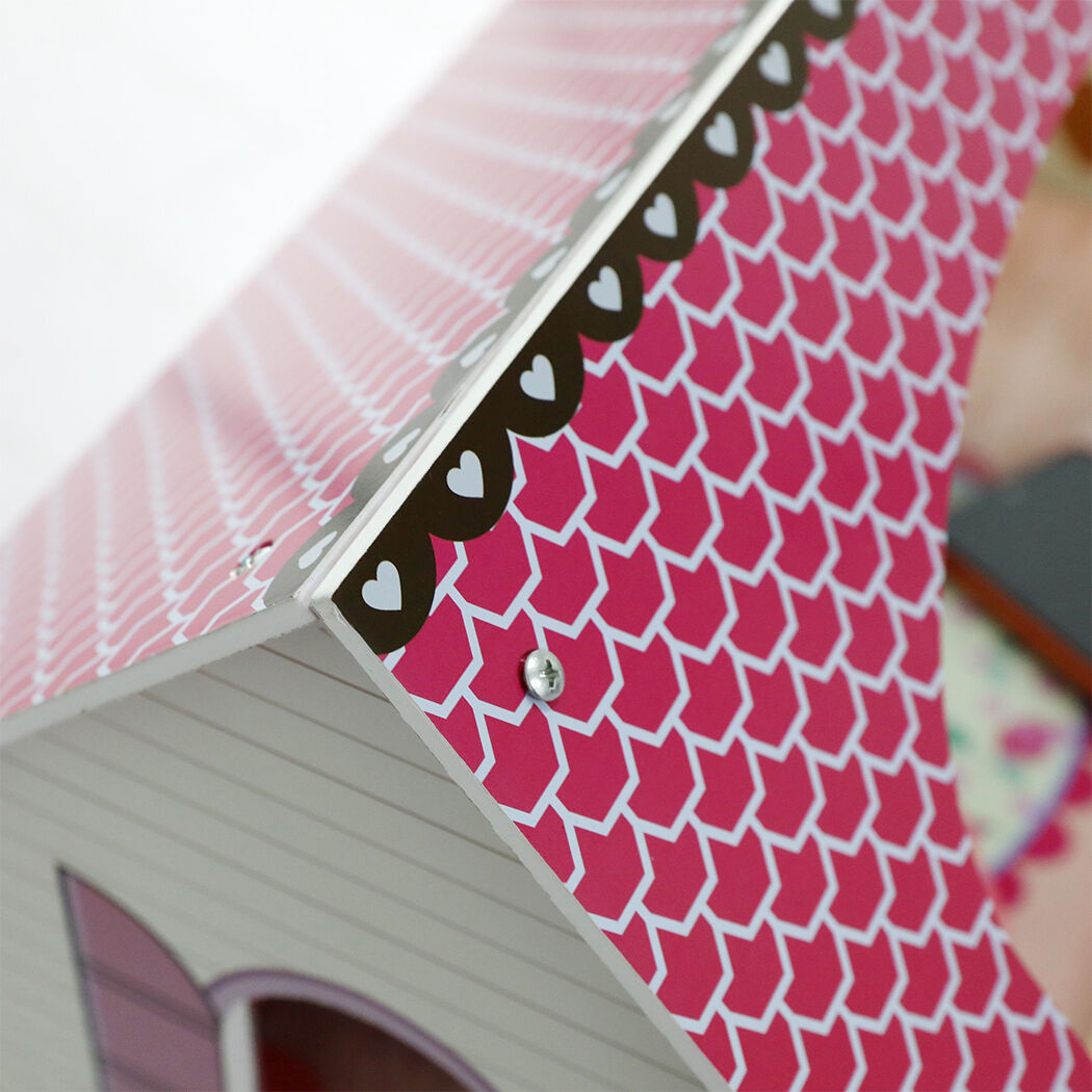 New dollhouse with stairs and 17 pieces of sturdy wooden furniture. Built specifically for children. Encourages them to play any way they like. Smooth surfaces with rounded corners are easy to play with. Water-based paint is safe for kids.