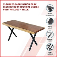1 x X-Shaped Table Bench Desk Legs Retro Industrial Design Fully Welded - Black