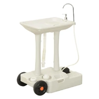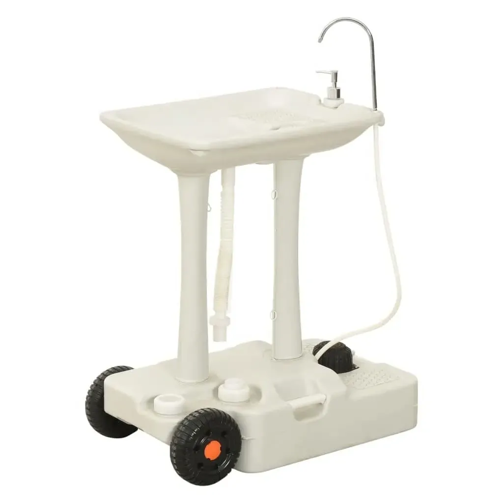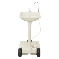 With its compact design, the camping hand wash stand with wheeled water tank is perfect for camping, motorhome trip, construction site, food event, pop kiosks, etc. Durable material: Made of High-density polyethylene (HDPE) and Polypropylene (PP), the hand wash dispenser stand and water tank are strong, weather resistant and easy to clean.Foot pump: The camp sink features a foot pump, you can step on it to provide a stream of water.Water outlets: With several water outlets, this portable water tank can make water flow in and out very quickly, so you don't have to spend time waiting.Practical wheels: The portable sink and caravan water tank are equipped with wheels for easy transportation.Wide applications: The water container on wheels can be connected to the toilets, sinks and washbasins of a caravan or camper for emergency use. Good to know:To make assembly as easy as possible, each product is delivered with a manual.