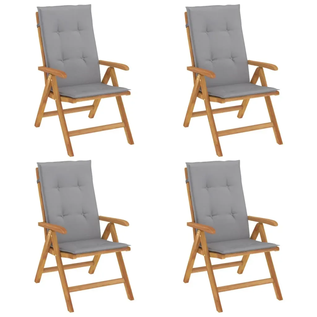 Elevate the comfort of your outdoor area with these classic wooden garden chairs. They are ideal for chatting with family and friends or just enjoying the soothing sunbathing! Solid teak wood: Solid teak wood is a beautiful natural material. It has been seasoned, kiln dried and then finely sanded to give a very smooth appearance. Teak wood is known for its exceptional strength and weather resistance.Adjustable backrest: The backrests of garden chairs are adjustable in 6 positions so that you can always find the most comfortable position.Foldable function: The garden seating is foldable, so you can fold it up to save space when not in use.Comfortable seating: The outdoor chair with its slatted seat, curved armrests and back fits your body and provides optimum comfort. Also, the soft cushion provides ultimate seating comfort.Non-slip cushion: Thoughtfully designed ropes and elastic back strap make it easy to attach the cushion to the chair and keep it neatly and safely in place. Good to know:To make sure your outdoor furniture stays beautiful, we recommend protecting it with a waterproof cover.