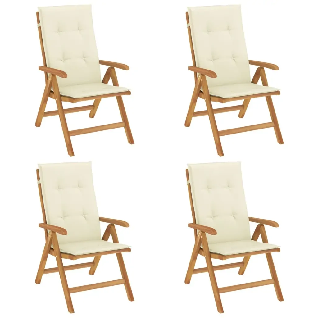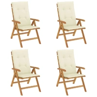 Elevate the comfort of your outdoor area with these classic wooden garden chairs. They are ideal for chatting with family and friends or just enjoying the soothing sunbathing! Solid teak wood: Solid teak wood is a beautiful natural material. It has been seasoned, kiln dried and then finely sanded to give a very smooth appearance. Teak wood is known for its exceptional strength and weather resistance.Adjustable backrest: The backrests of garden chairs are adjustable in 6 positions so that you can always find the most comfortable position.Foldable function: The garden seating is foldable, so you can fold it up to save space when not in use.Comfortable seating: The outdoor chair with its slatted seat, curved armrests and back fits your body and provides optimum comfort. Also, the soft cushion provides ultimate seating comfort.Non-slip cushion: Thoughtfully designed ropes and elastic back strap make it easy to attach the cushion to the chair and keep it neatly and safely in place. Good to know:To make sure your outdoor furniture stays beautiful, we recommend protecting it with a waterproof cover.