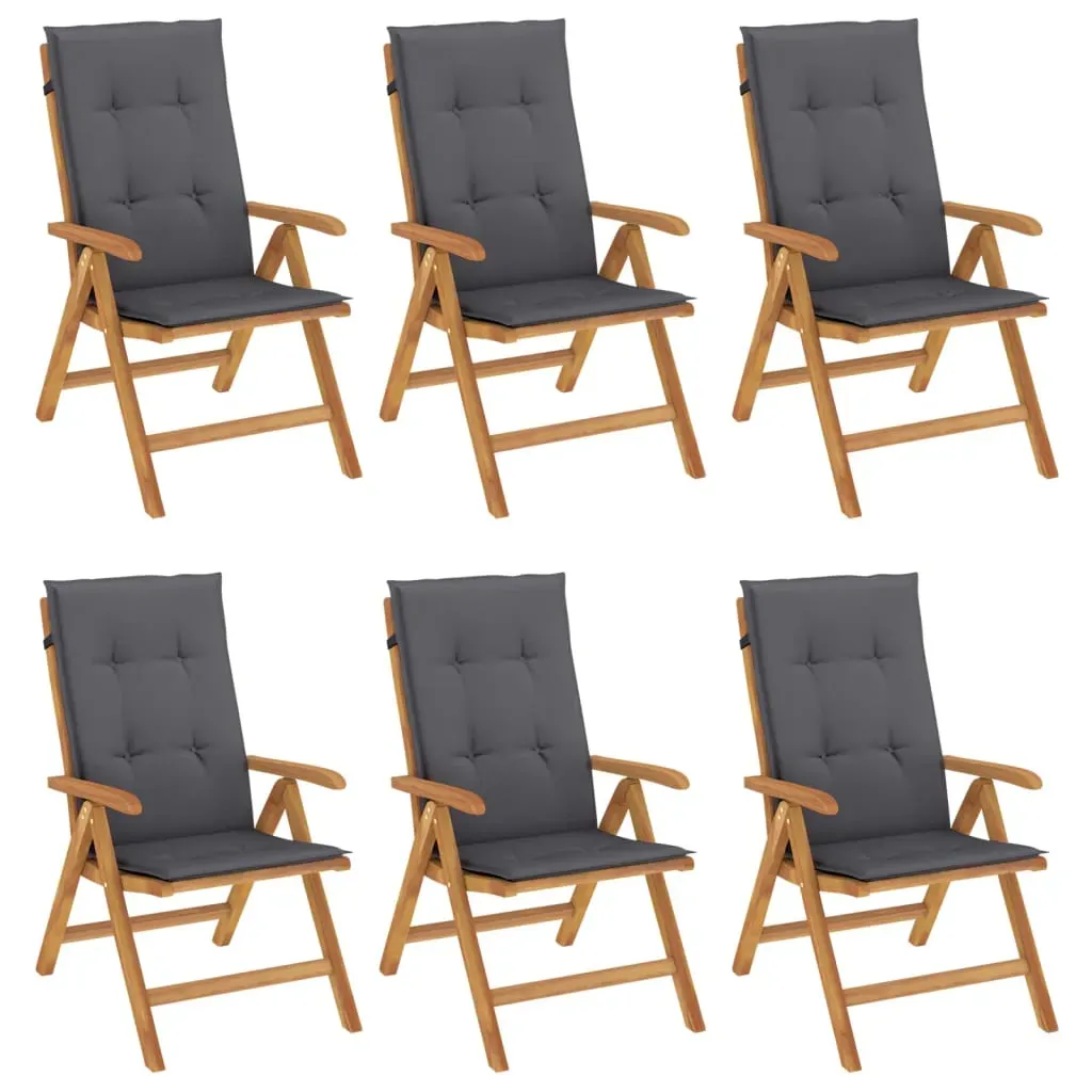 Elevate the comfort of your outdoor area with these classic wooden garden chairs. They are ideal for chatting with family and friends or just enjoying the soothing sunbathing! Solid teak wood: Solid teak wood is a beautiful natural material. It has been seasoned, kiln dried and then finely sanded to give a very smooth appearance. Teak wood is known for its exceptional strength and weather resistance.Adjustable backrest: The backrests of garden chairs are adjustable in 6 positions so that you can always find the most comfortable position.Foldable function: The garden seating is foldable, so you can fold it up to save space when not in use.Comfortable seating: The outdoor chair with its slatted seat, curved armrests and back fits your body and provides optimum comfort. Also, the soft cushion provides ultimate seating comfort.Non-slip cushion: Thoughtfully designed ropes and elastic back strap make it easy to attach the cushion to the chair and keep it neatly and safely in place. Good to know:To make sure your outdoor furniture stays beautiful, we recommend protecting it with a waterproof cover.