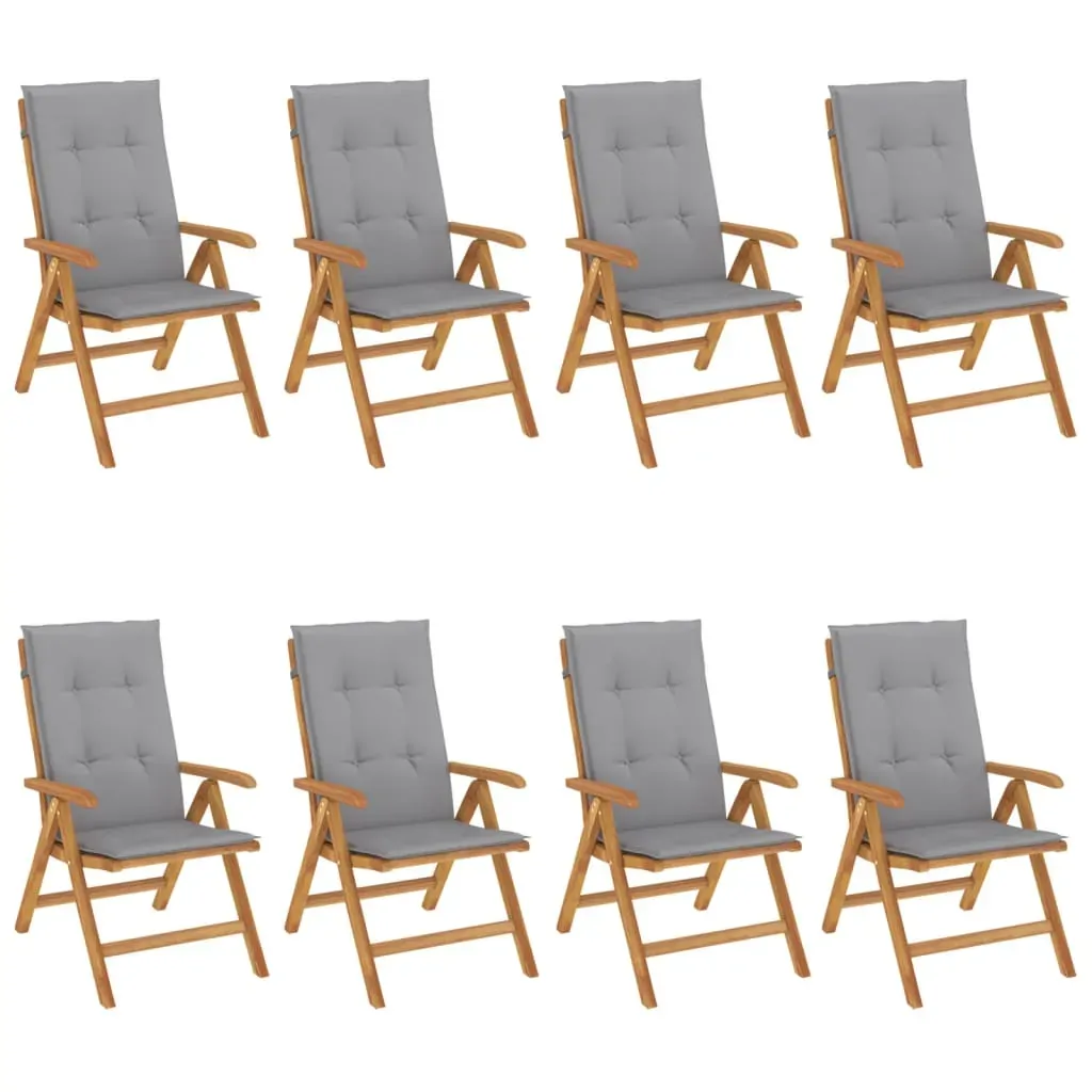 Elevate the comfort of your outdoor area with these classic wooden garden chairs. They are ideal for chatting with family and friends or just enjoying the soothing sunbathing! Solid teak wood: Solid teak wood is a beautiful natural material. It has been seasoned, kiln dried and then finely sanded to give a very smooth appearance. Teak wood is known for its exceptional strength and weather resistance.Adjustable backrest: The backrests of garden chairs are adjustable in 6 positions so that you can always find the most comfortable position.Foldable function: The garden seating is foldable, so you can fold it up to save space when not in use.Comfortable seating: The outdoor chair with its slatted seat, curved armrests and back fits your body and provides optimum comfort. Also, the soft cushion provides ultimate seating comfort.Non-slip cushion: Thoughtfully designed ropes and elastic back strap make it easy to attach the cushion to the chair and keep it neatly and safely in place. Good to know:To make sure your outdoor furniture stays beautiful, we recommend protecting it with a waterproof cover.