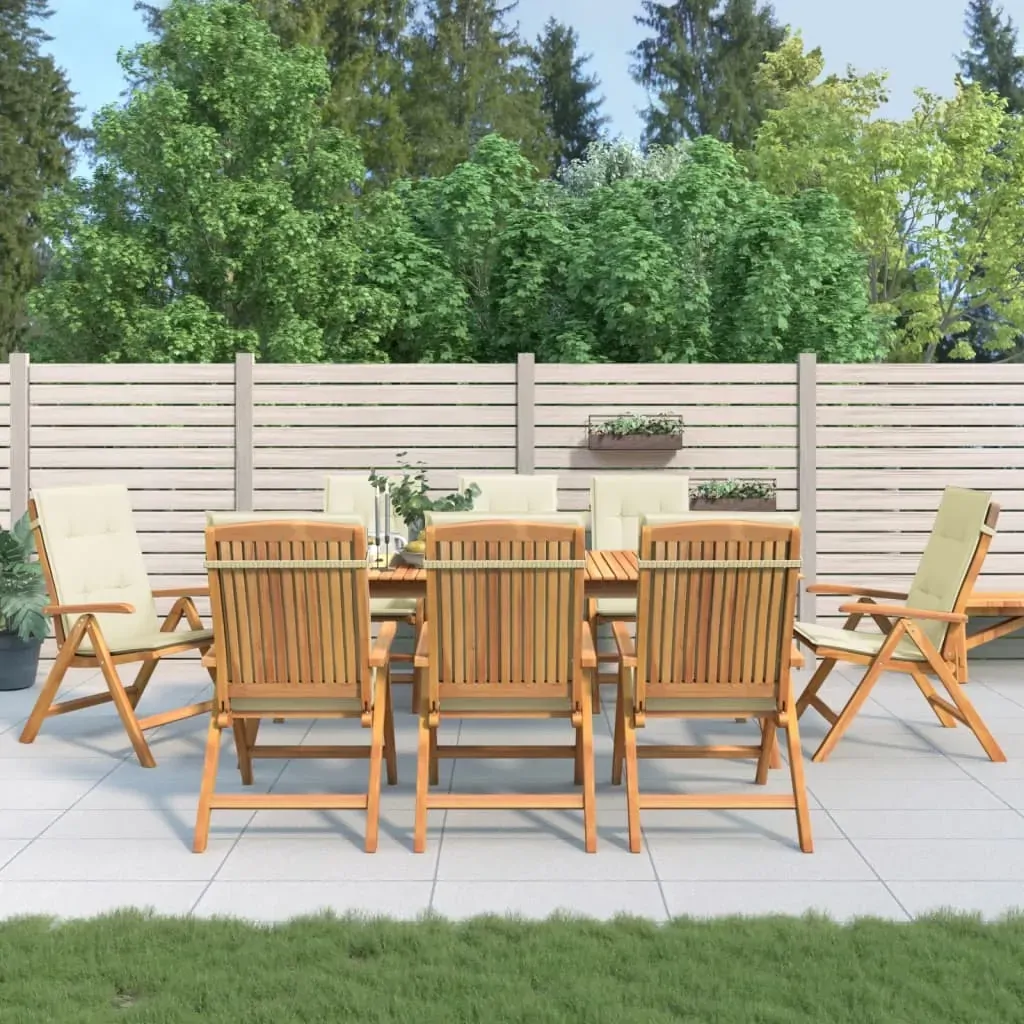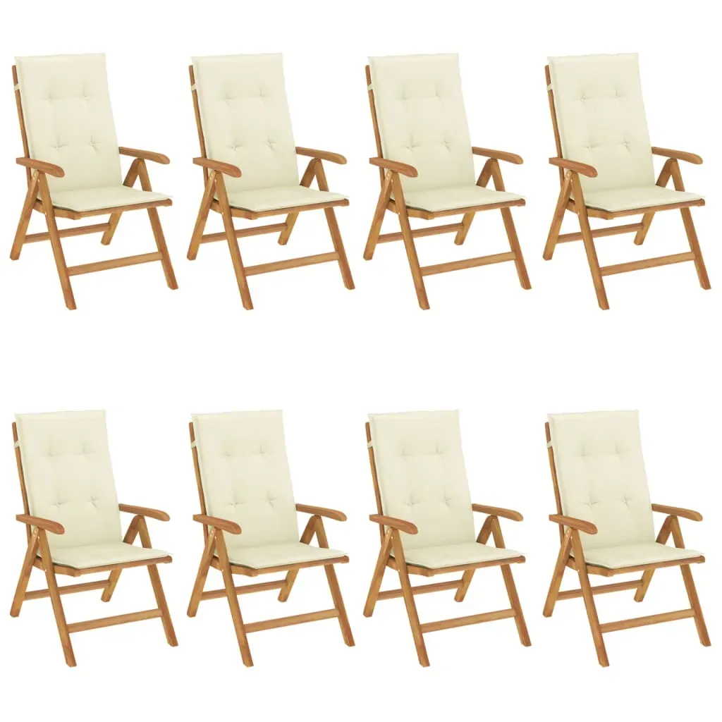 Elevate the comfort of your outdoor area with these classic wooden garden chairs. They are ideal for chatting with family and friends or just enjoying the soothing sunbathing! Solid teak wood: Solid teak wood is a beautiful natural material. It has been seasoned, kiln dried and then finely sanded to give a very smooth appearance. Teak wood is known for its exceptional strength and weather resistance.Adjustable backrest: The backrests of garden chairs are adjustable in 6 positions so that you can always find the most comfortable position.Foldable function: The garden seating is foldable, so you can fold it up to save space when not in use.Comfortable seating: The outdoor chair with its slatted seat, curved armrests and back fits your body and provides optimum comfort. Also, the soft cushion provides ultimate seating comfort.Non-slip cushion: Thoughtfully designed ropes and elastic back strap make it easy to attach the cushion to the chair and keep it neatly and safely in place. Good to know:To make sure your outdoor furniture stays beautiful, we recommend protecting it with a waterproof cover.