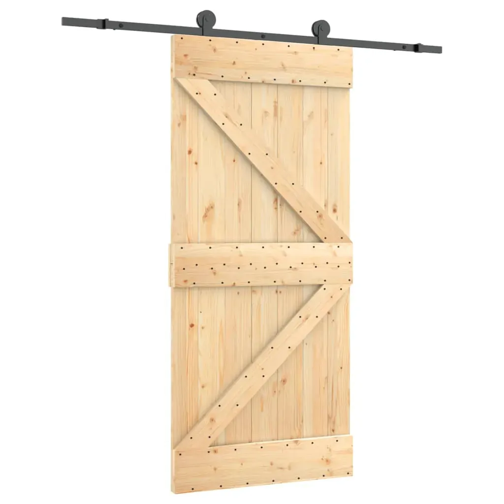 This solid pine wood sliding door is designed to enrich the entrance area of your house and also ensure better security for your home. Solid pine wood: The interior door is made of solid pine wood. Solid pine wood is a beautiful natural material. Pine wood has a straight grain, and the knots give the material its signature, rustic look.Sturdy sliding rails: Steel is an exceptionally hard and strong material. It offers sturdiness and stability. The powder coating on steel creates a protective layer against wear and tear. Made of powder-coated steel, the sliding rails are sturdy, durable and heavy-duty.Quiet and smooth sliding: Thanks to the internal bearings, your internal sliding door will slide smoothly and quietly. Doorstops are also included to prevent the derailing of the rollers, while the rubber gaskets will buffer the bump from rollers and reduce the noise.Space-saving design: This wooden sliding door saves space and looks more spacious. It is the first choice for a simple and atmospheric modern home design.Wide applications: The sliding barn door can be installed on both wooden walls and concrete walls. It's great for use in the bedroom, kitchen, barn, garage, etc.