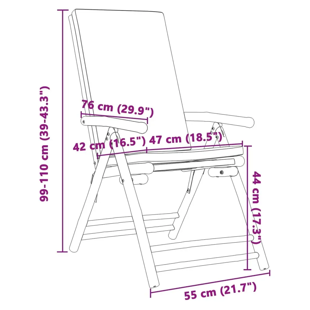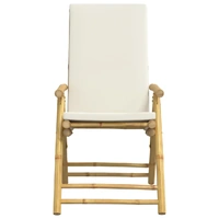 These garden reclining chairs, made of solid bamboo, will be a great choice for your family to have dinner or read and relax. Durable material: Bamboo is known for its flexibility and hardness. Bamboo furniture is a good option when you want strong furniture made from natural materials.Reclining function: This reclining chair is designed with a five-position adjustable backrest, allowing you to customise the recline for your comfort.Foldable design: These chairs can be easily folded away when not in use, for easy storage and transportation.Comfortable seat experience: These chairs, complete with thickly padded cushions, offer a comfortable seating experience.Removable and washable cover: These seat cushions feature removable covers for easy washing and maintenance. The cushion covers have a flap at the back for easy attachment to the backrests. Good to know:To make sure your outdoor furniture stays beautiful, we recommend protecting it with a waterproof cover.