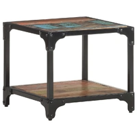 This solid reclaimed wood coffee table with a practical design is perfect for bringing a classic presence to your living room or office. You can also use it as a nightstand in the bedroom. This side table is made of solid reclaimed wood that has been sourced from joists, floors and support beams from old buildings being demolished, and can consist of different types of wood like pine, teak, beech, oak, cedar, mango wood, acacia, etc. This means the reclaimed wood retains the characteristics of these different types of wood. Reclaimed wood is already aged, weathered and dried, so it doesn't shrink or bend. This table is fully handmade and the beautiful wood grains make every piece of furniture unique and slightly different from each other. Supported by the strong powder-coated iron frame, this bedside table is stable and sturdy. Its tabletop is perfect for placing drinks, fruit bowls or ornaments. Also, the bottom shelf provides ample space for keeping your magazines, books, and other small essentials organised and within reach. Important note: The colours vary from piece to piece, making each piece unique. The delivery is random, ensuring the exclusivity and individuality of your product.