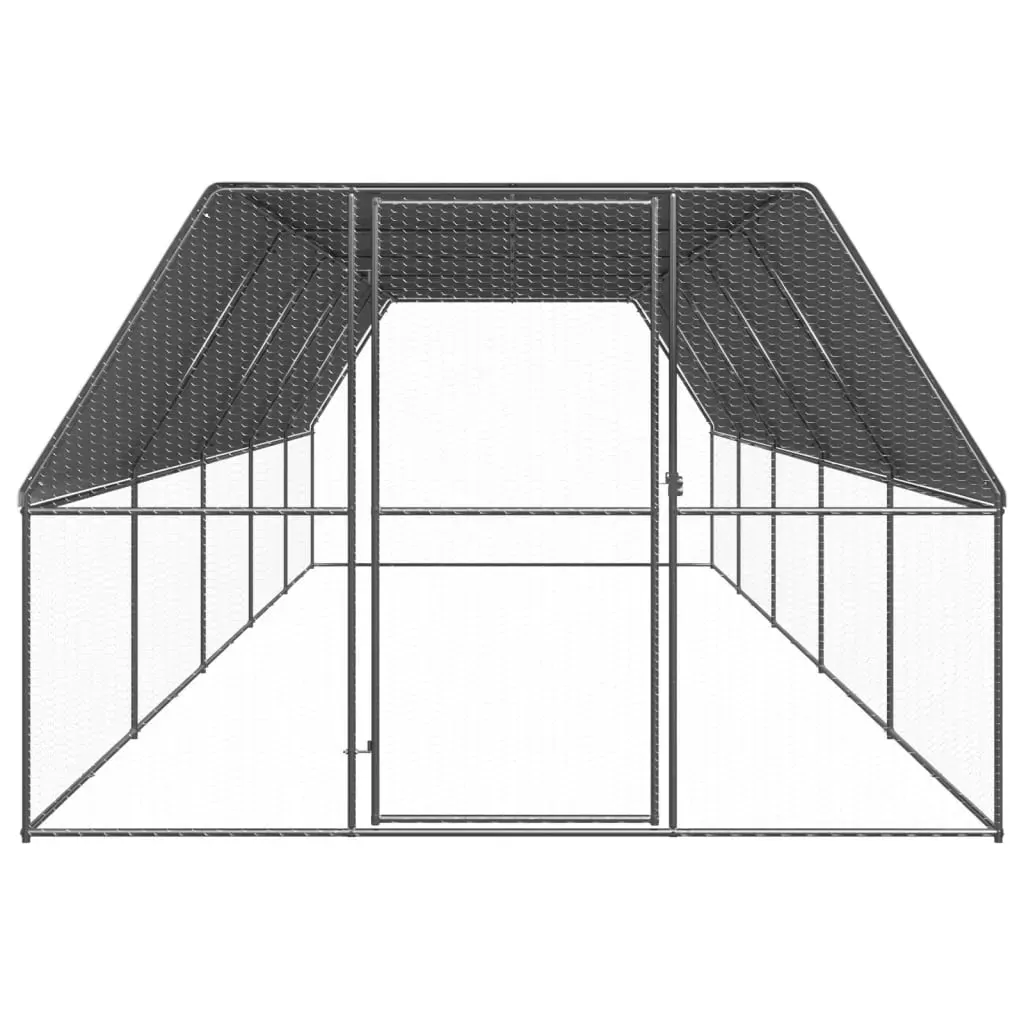 This practical and spacious chicken cage is a perfect choice as an outdoor enclosure for your chickens, hens, ducks and other small animals and keeps them comfortable. Durable and sturdy frame: The chicken coop is made of galvanised steel. Steel is an exceptionally hard and strong material. It offers sturdiness and stability. Galvanisation provides better protection against corrosion and is useful for products that'll be used outdoors as well as in harsh environments.Water-resistant roof: The hen cage has a polyethylene roof that is water-resistant and UV-resistant, providing protection from sun, rain, snow and other weather conditions.Ample activity room: The chicken cage provides your chickens with ample activity room to walk around with ease. Besides, it is also suitable for other small animals such as birds, rabbits, ducks, geese, etc.Extra security: The hinged door with a lockable latch system of the walk in chicken coop ensures extra security and safety for your chickens.