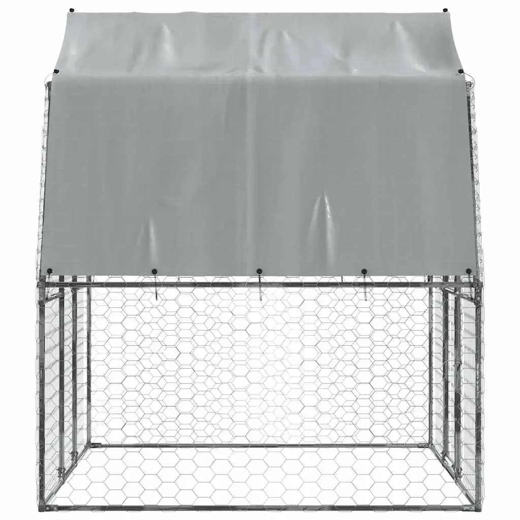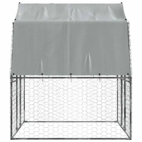 Keep your furry friends in a safe and comfortable space with this dog cage! Durable and sturdy frame: The dog cage is made of galvanised steel. Steel is an exceptionally hard and strong material. It offers sturdiness and stability. Galvanisation provides better protection against corrosion and is useful for products that'll be used outdoors as well as in harsh environments.Mesh design: The mesh design of the outdoor dog kennel helps prevent mischief and unexpected accidents while enabling ventilation.Water-resistant roof: The dog kennel has a polyethylene roof that is water-resistant and UV-resistant, providing protection from sun, rain, snow and other weather conditions.Ample activity room: The dog crate provides your dogs with ample activity room to walk around with ease. Besides, it is also suitable for other small animals such as birds, rabbits, ducks, geese, etc.Extra security: The hinged door with a lockable latch system of the walk in dog cage ensures extra security and safety for your furry friends.