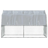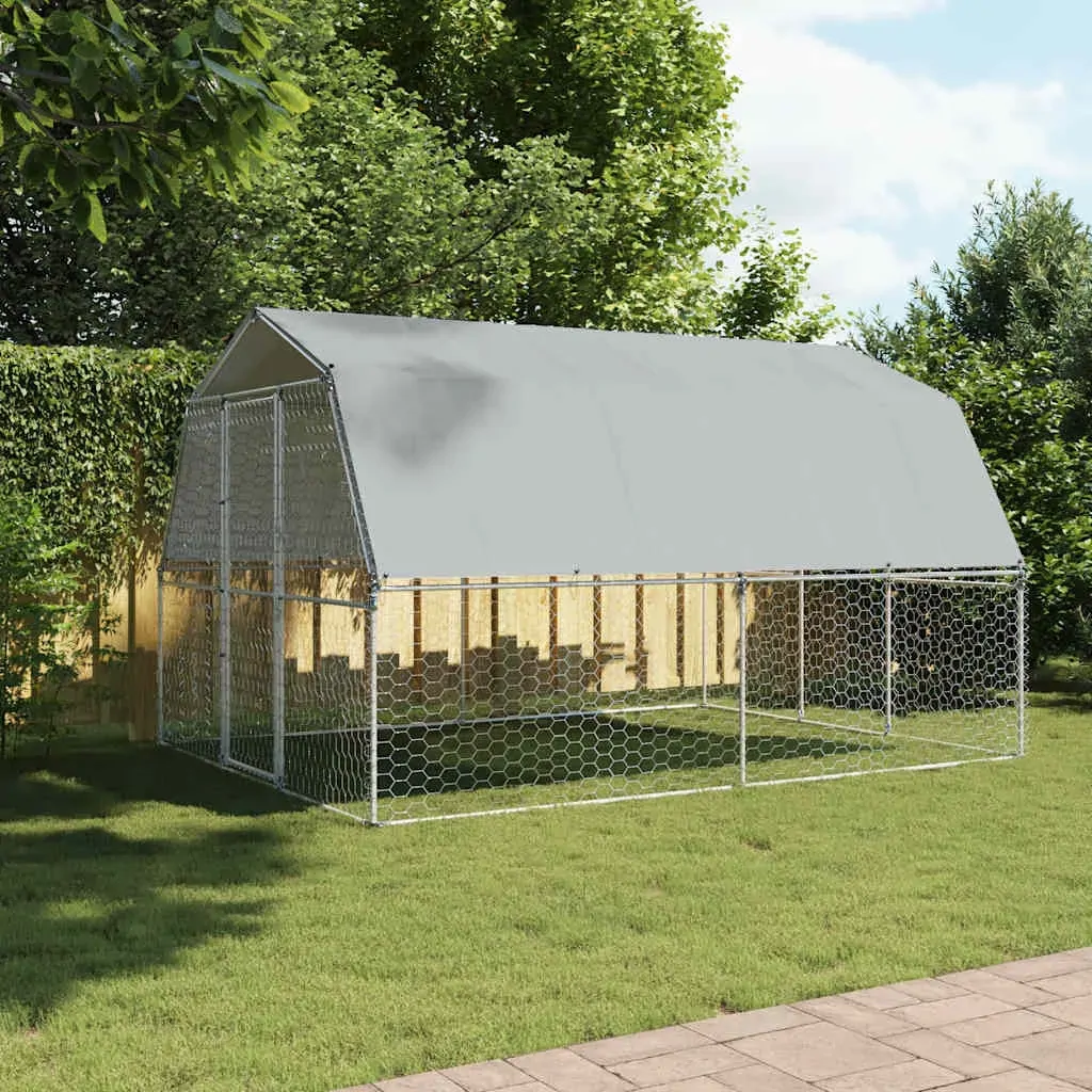 Keep your furry friends in a safe and comfortable space with this dog cage! Durable and sturdy frame: The dog cage is made of galvanised steel. Steel is an exceptionally hard and strong material. It offers sturdiness and stability. Galvanisation provides better protection against corrosion and is useful for products that'll be used outdoors as well as in harsh environments.Mesh design: The mesh design of the outdoor dog kennel helps prevent mischief and unexpected accidents while enabling ventilation.Water-resistant roof: The dog kennel has a polyethylene roof that is water-resistant and UV-resistant, providing protection from sun, rain, snow and other weather conditions.Ample activity room: The dog crate provides your dogs with ample activity room to walk around with ease. Besides, it is also suitable for other small animals such as birds, rabbits, ducks, geese, etc.Extra security: The hinged door with a lockable latch system of the walk in dog cage ensures extra security and safety for your furry friends.