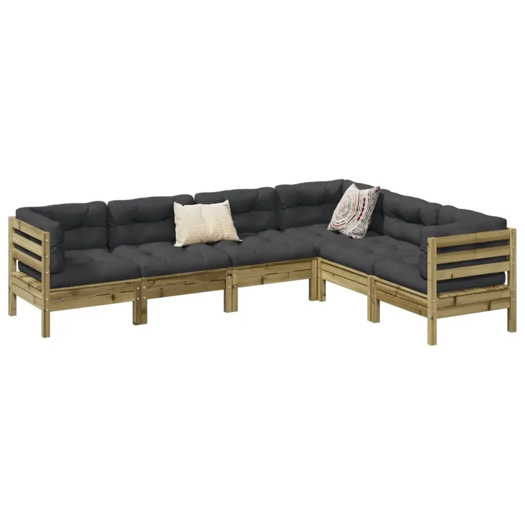 This garden sofa set is the perfect addition to your backyard, terrace, or patio, providing a comfortable and inviting space for chatting with family and friends or simply relaxing and enjoying the outdoors. Sturdy and durable material: Solid pinewood is known for its strength and durability. Its straight grains and distinctive knots contribute to its rustic charm. It has been impregnated with a preservative solution and undergone autoclave treatment, enhancing its resistance to decay and weathering.Comfortable seat experience: This outdoor furniture, complete with thickly padded cushions, offers a comfortable seating experience.Well-ventilated and pooling prevention: The slatted design promotes optimal airflow and effectively prevents water pooling, ensuring a dry and comfortable seat.Modular design: This outdoor furniture set has a modular design, making it completely flexible and easy to move around, so you can create a customised outdoor furniture arrangement. Good to know:To make sure your outdoor furniture stays beautiful, we recommend protecting it with a waterproof cover.