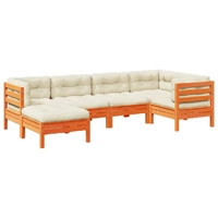 This garden sofa set is the perfect addition to your backyard, terrace, or patio, providing a comfortable and inviting space for chatting with family and friends or simply relaxing and enjoying the outdoors. Sturdy and durable material: Solid pinewood is known for its strength and durability. Its straight grains and distinctive knots contribute to its rustic charm.Comfortable seat experience: This outdoor furniture, complete with thickly padded cushions, offers a comfortable seating experience.Well-ventilated and pooling prevention: The slatted design promotes optimal airflow and effectively prevents water pooling, ensuring a dry and comfortable seat.Modular design: This outdoor furniture set has a modular design, making it completely flexible and easy to move around, so you can create a customised outdoor furniture arrangement. Good to know:To make sure your outdoor furniture stays beautiful, we recommend protecting it with a waterproof cover.