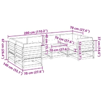 This garden sofa set is the perfect addition to your backyard, terrace, or patio, providing a comfortable and inviting space for chatting with family and friends or simply relaxing and enjoying the outdoors. Sturdy and durable material: Solid pinewood is known for its strength and durability. Its straight grains and distinctive knots contribute to its rustic charm. It has been impregnated with a preservative solution and undergone autoclave treatment, enhancing its resistance to decay and weathering.Comfortable seat experience: This outdoor furniture, complete with thickly padded cushions, offers a comfortable seating experience.Well-ventilated and pooling prevention: The slatted design promotes optimal airflow and effectively prevents water pooling, ensuring a dry and comfortable seat.Modular design: This outdoor furniture set has a modular design, making it completely flexible and easy to move around, so you can create a customised outdoor furniture arrangement. Good to know:To make sure your outdoor furniture stays beautiful, we recommend protecting it with a waterproof cover.