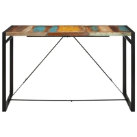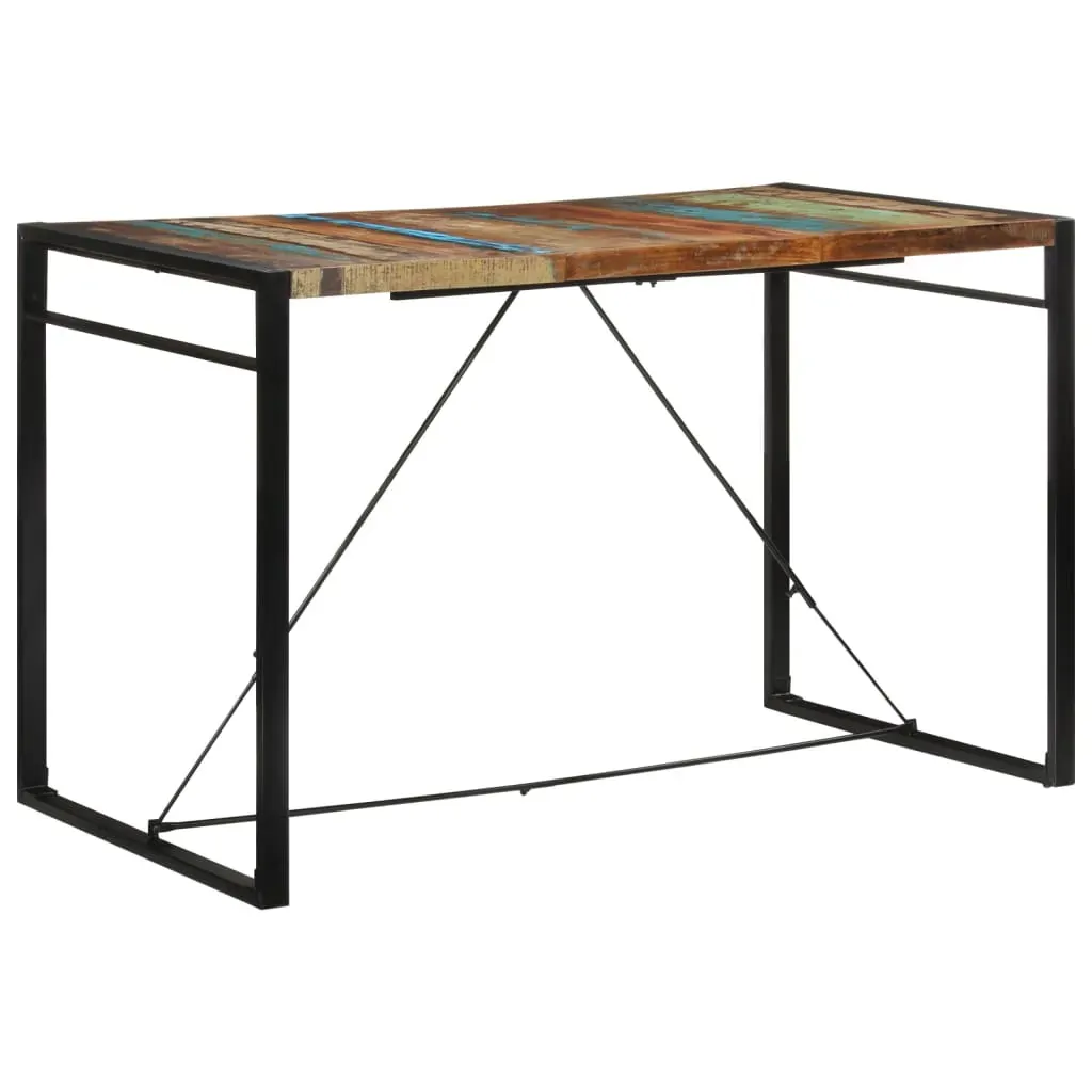 This wooden bar table features a vintage charm that will make it a distinctive addition to your living space. Solid reclaimed wood: Solid reclaimed wood consists of reused timbers such as teak, mango wood, pinewood, and beech. These materials are recycled from old buildings such as factories, sheds, and boats. As every piece is handmade, colours will vary for each product.Sturdy frame: The metal frame ensures sturdiness and stability.Practical tabletop: The sturdy tabletop of the bistro table is perfect for placing meals, drinks, and other decorative items. Warning:To prevent it being overturned, this product must be used with the provided wall attachment device. Note:The colours may vary from piece to piece, making each piece unique and slightly different from the next. The delivery is random, ensuring the exclusivity and individuality of your product.