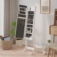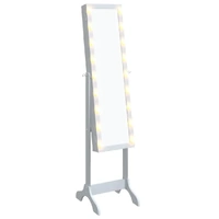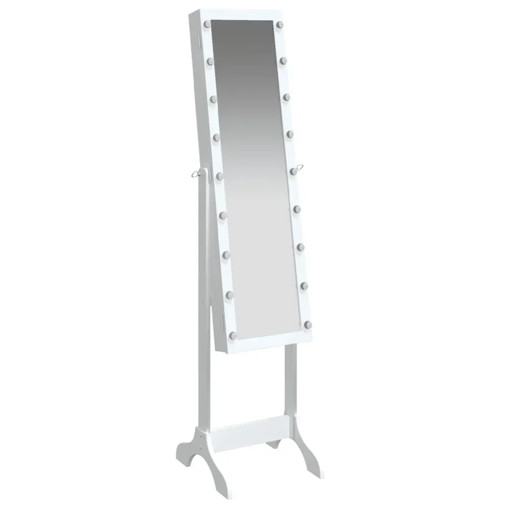 This free-standing mirror with LED with its elegant design makes a great decorative addition to your hallway, bedroom, dressing room, cloakroom, etc. Durable material: The engineered wood is of exceptional quality with smooth surface and also features strength, stability and resistance to moisture.LED lights: The featured LED bulbs around the mirror illuminate your beauty as well.Clear image: The glass mirror face provides a clear image. So, you can enjoy a beautiful and natural reflection when standing in front of the vanity mirror.Additional storage space: This floor mirror offers ample storage space behind the mirror for easy access to your items.Unique decoration: The standing mirror instantly brings a touch of elegance, glamour, and romance to your indoor living space.