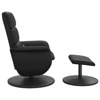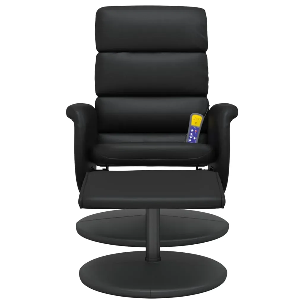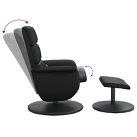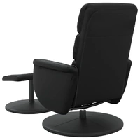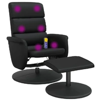 Sit back and drift away in this highly comfortable massage recliner chair! Vibration function: The featured 6 massage points let you experience a better-targeted massage. Additionally, the included hand control allows you to pick different massage programs. The massage function is powered by the USB connector that requires a certified 5V USB power source (not included).Manual reclining function: The massage chair is specially designed with a reclining function so that you can adjust the backrest as per your comfort. The backrest can be tilted from 105 to 125 degrees.360-degree swivel: The massage recliner can be swivelled freely in 360 degrees, giving it extra flexibility.Comfortable seat experience: The thickly padded seat, backrest, and wide armrests covered in faux leather provide a cosy and warm sensation, making you feel embraced while seated. The extra stool is suitable for resting your feet when you lie on the recliner, making this chair a comfortable seat for any occasion.Solid and stable frame: The frame made of plywood and metal provides a strong structure and stability. This reclining armchair is comfortable and durable.