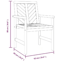 These garden dining chairs with fishbone pattern slats are a perfect addition to your garden and terrace, creating a lasting impression! Durable material: Solid acacia wood is a beautiful natural material. Acacia wood is a tropical hardwood, which is dense, sturdy, and durable.Stable frame: The wooden frame of the dining chair ensures sturdiness and stability.Comfortable seating: The garden chair is designed with armrests and a chevron pattern backrest to offer you a comfortable seating experience.Unique design: Featuring a distinctive diagonal slat pattern, the wooden chairs attract the attention of any onlooker. Good to know:To make assembly as easy as possible, each product is delivered with a manual. Note:To make sure your outdoor furniture stays beautiful, we recommend protecting it with a waterproof cover.