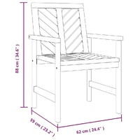 These garden dining chairs with fishbone pattern slats are a perfect addition to your garden and terrace, creating a lasting impression! Durable material: Solid acacia wood is a beautiful natural material. Acacia wood is a tropical hardwood, which is dense, sturdy, and durable.Stable frame: The wooden frame of the dining chair ensures sturdiness and stability.Comfortable seating: The garden chair is designed with armrests and a chevron pattern backrest to offer you a comfortable seating experience.Unique design: Featuring a distinctive diagonal slat pattern, the wooden chairs attract the attention of any onlooker. Good to know:To make assembly as easy as possible, each product is delivered with a manual. Note:To make sure your outdoor furniture stays beautiful, we recommend protecting it with a waterproof cover.