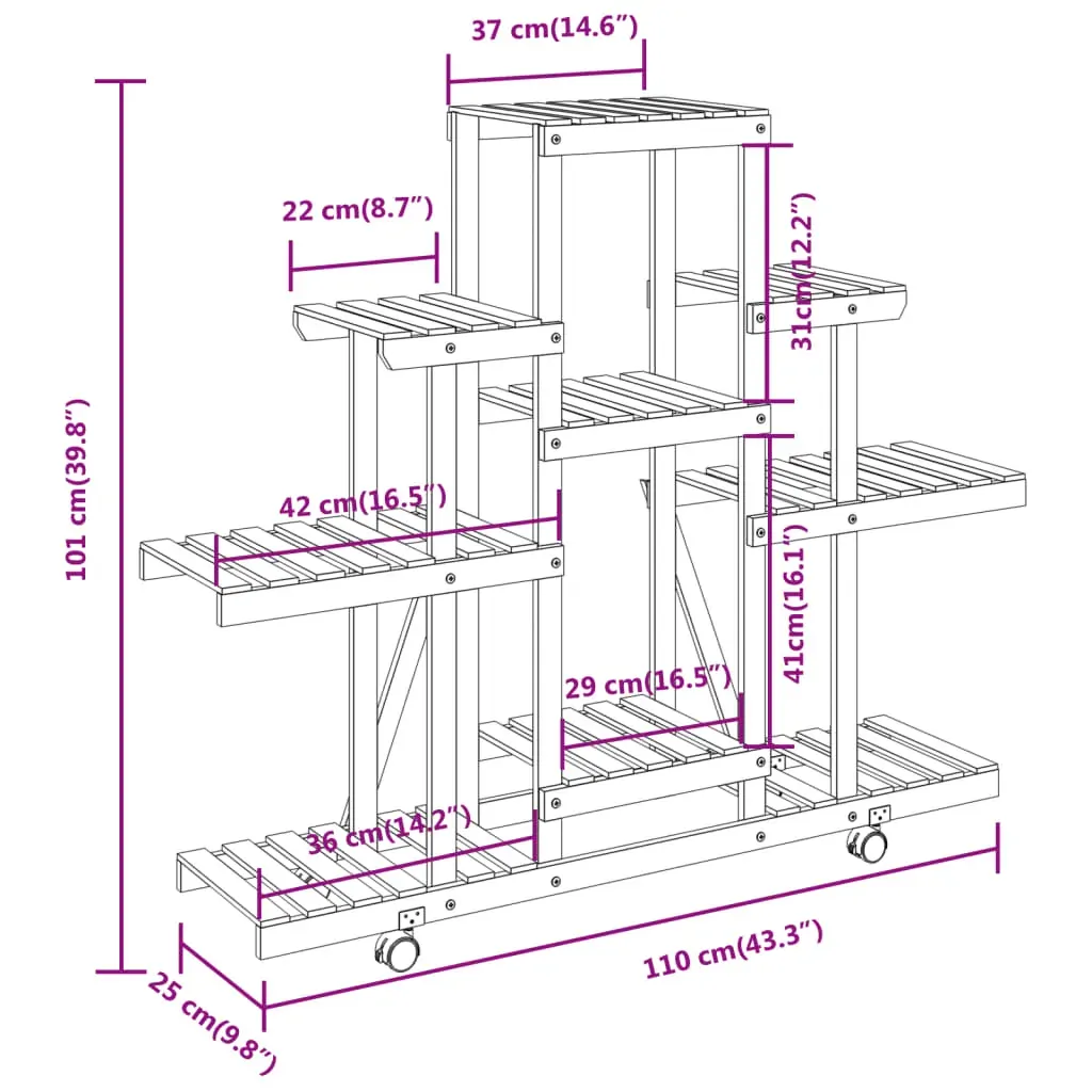This wooden flower stand with wheels is a perfect choice to place and display your plants and other decorative items. Durable fir wood: This plant stand is made of fir wood, which is sturdy and durable, ensuring years of service.Ample space: This plant rack offers sufficient space for displaying your plants and other decorative items.Wide application: Featured with wood texture, this wooden planter rack brings decorated places a touch of retro and elegant feel. What’s more, the symmetric appearance will match different decoration styles, such as living room, balcony, patio.Considerate wheels: With 360-degree rotatable castors, the plant shelves on wheels can be moved around flexibly. Good to know:To make assembly as easy as possible, each product is delivered with a manual.