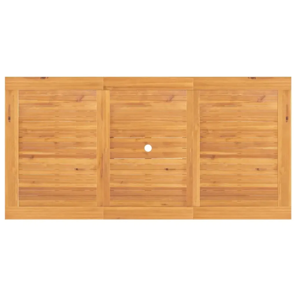 This extendable wooden garden table is a perfect choice for outdoor use and will be the focal point of your garden, terrace or patio. Solid teak wood: Solid teak wood is a beautiful natural material. It has been seasoned, kiln dried and then fine sanded to give a very smooth appearance. Teak wood is known for its exceptional strength and weather resistance.Extendable design: Thanks to its special design, this outdoor table can be extended when extra space is required.Parasol hole: There is a parasol hole in the patio table top so you can easily attach a parasol to create a shady spot.Easy-to-clean surface: The dining table is applied with a beautiful finish to give the wood a warm colour and is easy to clean with a damp cloth.
